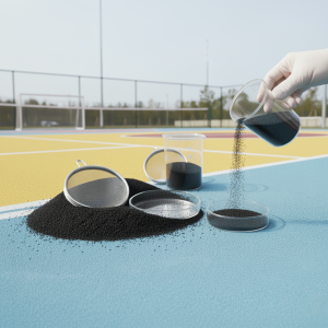 At First Choice for Sport Courts, we use high-quality rubber powder sourced from durable and eco-friendly materials.